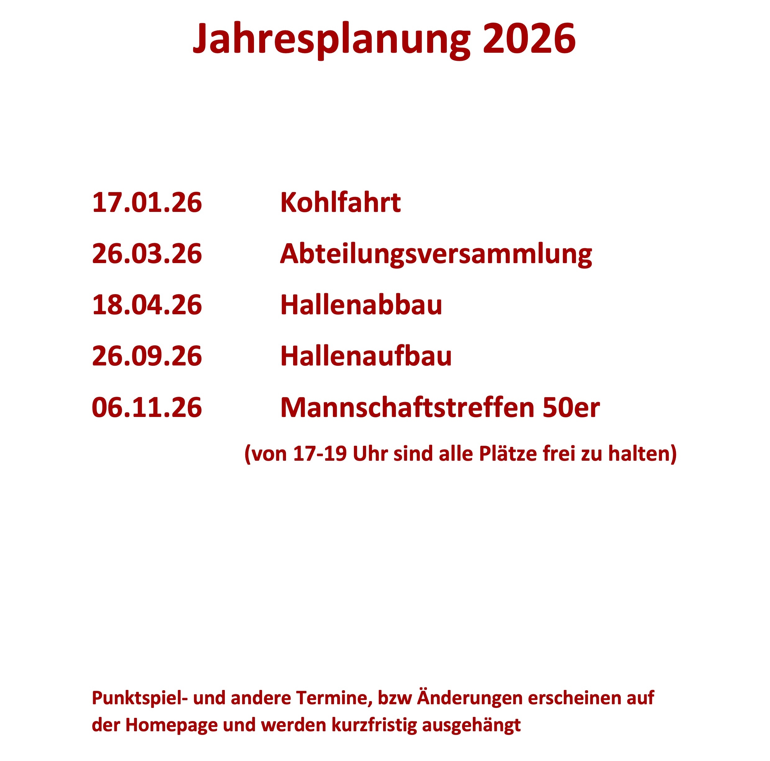 Bitte an den Wochenenden die Punktspielzeiten beachten!